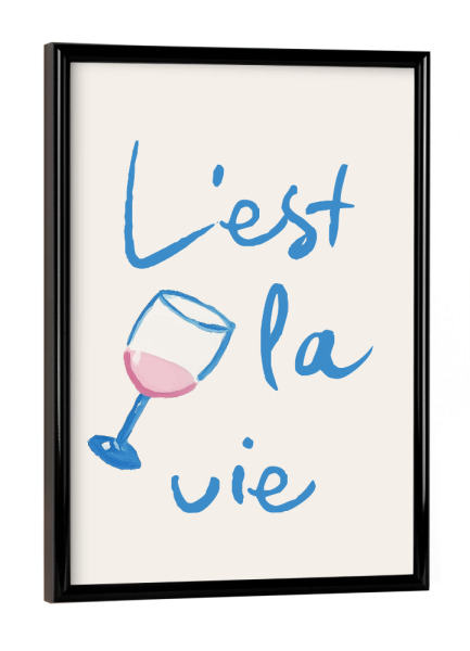 Poster mit schwarzem Rahmen "C'est la vie – Weinglas-Charme" artboxONE - Typografie,Essen & Trinken,Essen & Trinken / Alkohol