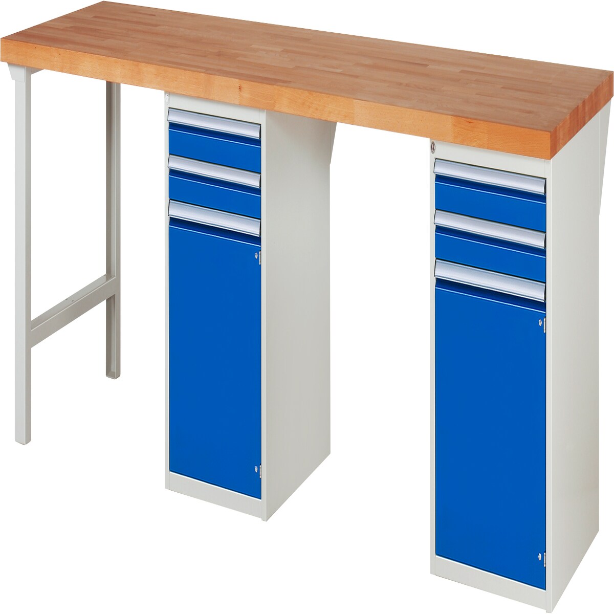 Werkbank mit 3 L, 3 XL Schubladen - Teilauszug - 120:2 / 150:2 / 270:2 - 840 x 1.500 x 700 mm (HxBxT) - Traglast 1.250 kg - Buche