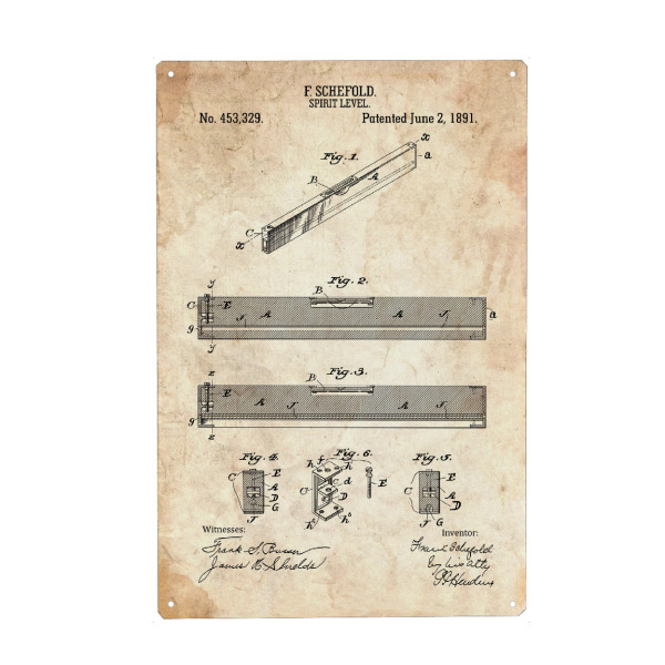 Holzbild "Wasserwaage Patent (Antik)" artboxONE - Für Papa - Zimmerei,Werkzeug,Patent,Retro,Entwurf,Technologie,Vater,Fachmann,Wasserwaage,Richtwaage