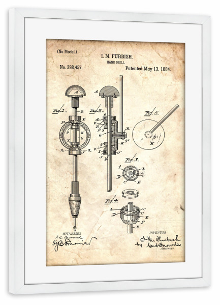 Poster mit Rahmen weiß "Handbohrer Patent (Antik)" artboxONE - Für Papa - Werkzeug,Patent,Retro,Handbohrer