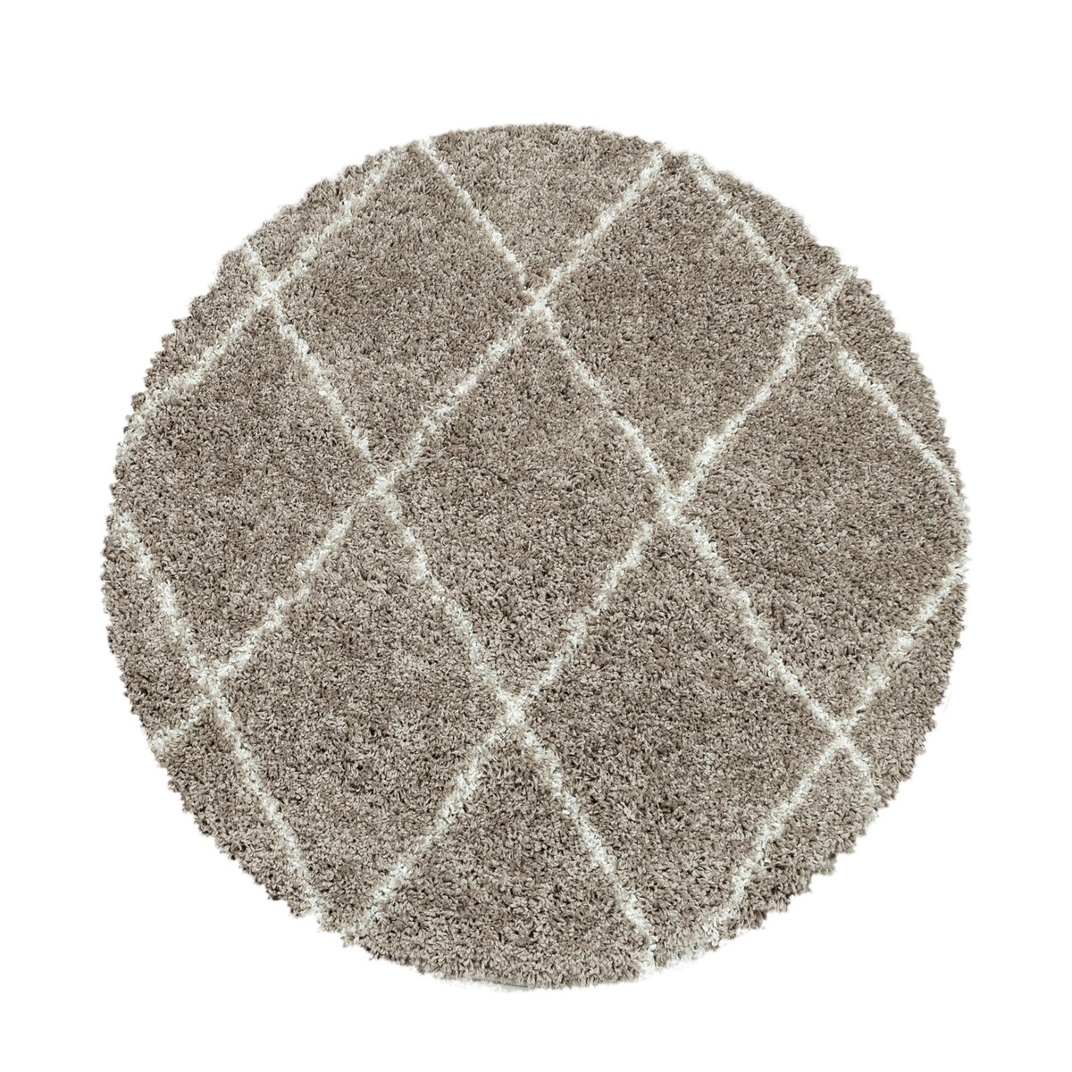 Carpetsale24 Hochflor Runder Teppich Beige 80 cm Rund Rauten Design Flauschig- Langflor Wohnzimmerteppich Skandinavischer Stil Shaggy Teppich