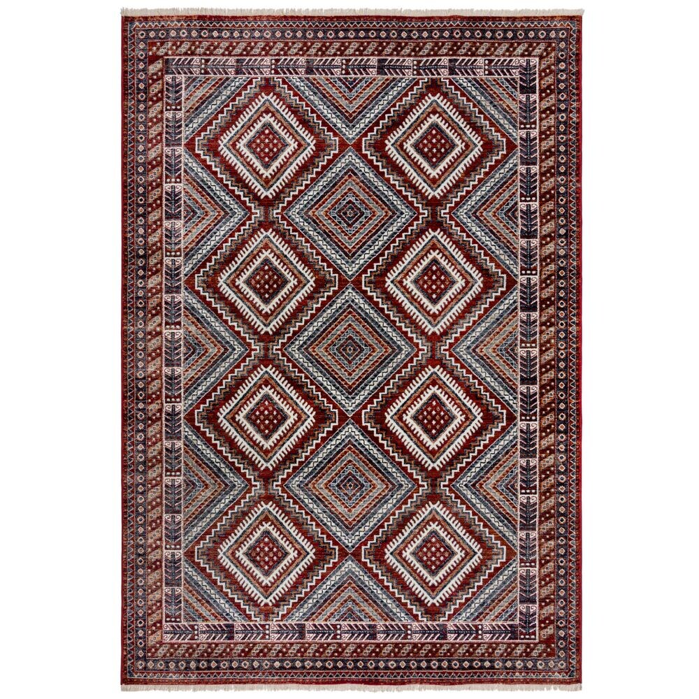 Wohnzimmerteppich mit Fransen & traditionellem geometrischem Muster - `Kelvin`. Farbe: Rot, 160x234 cm | Kadima Design