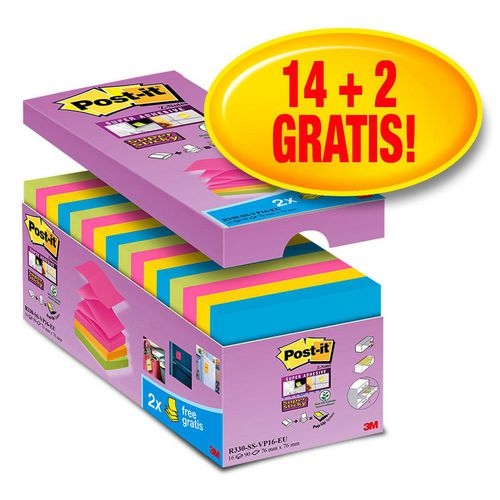 Post-it Super Sticky Z-Notes Haftnotizen 76 x 76 mm Farbig sortiert 90 Blatt 14 Blöcke + 2 GRATIS