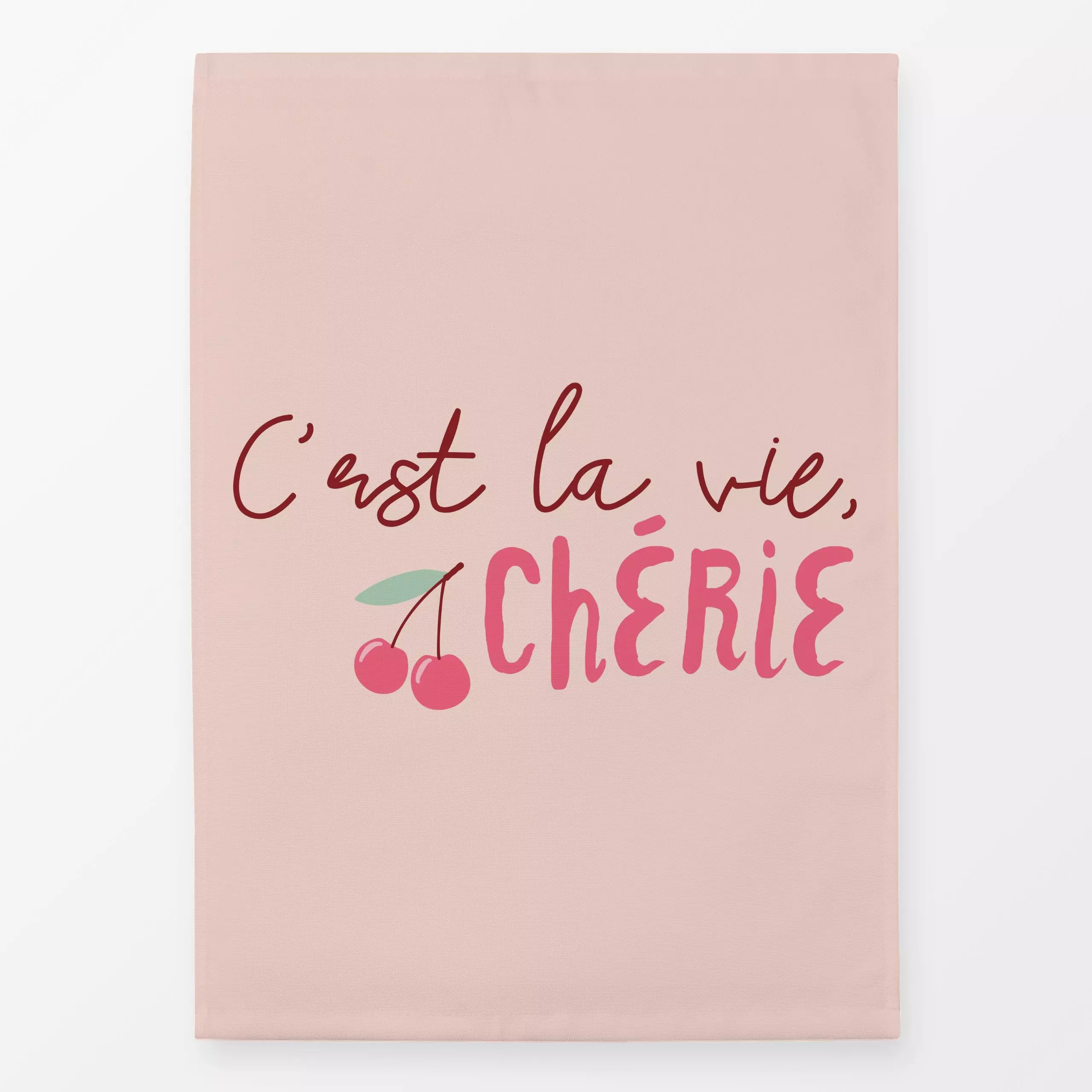 Geschirrtücher C ́est la vie chérie rose - Sprüche & Schriftzüge - von „Heyduda"; Kirschen, Zitate und Slogans, Liebeszitate,...