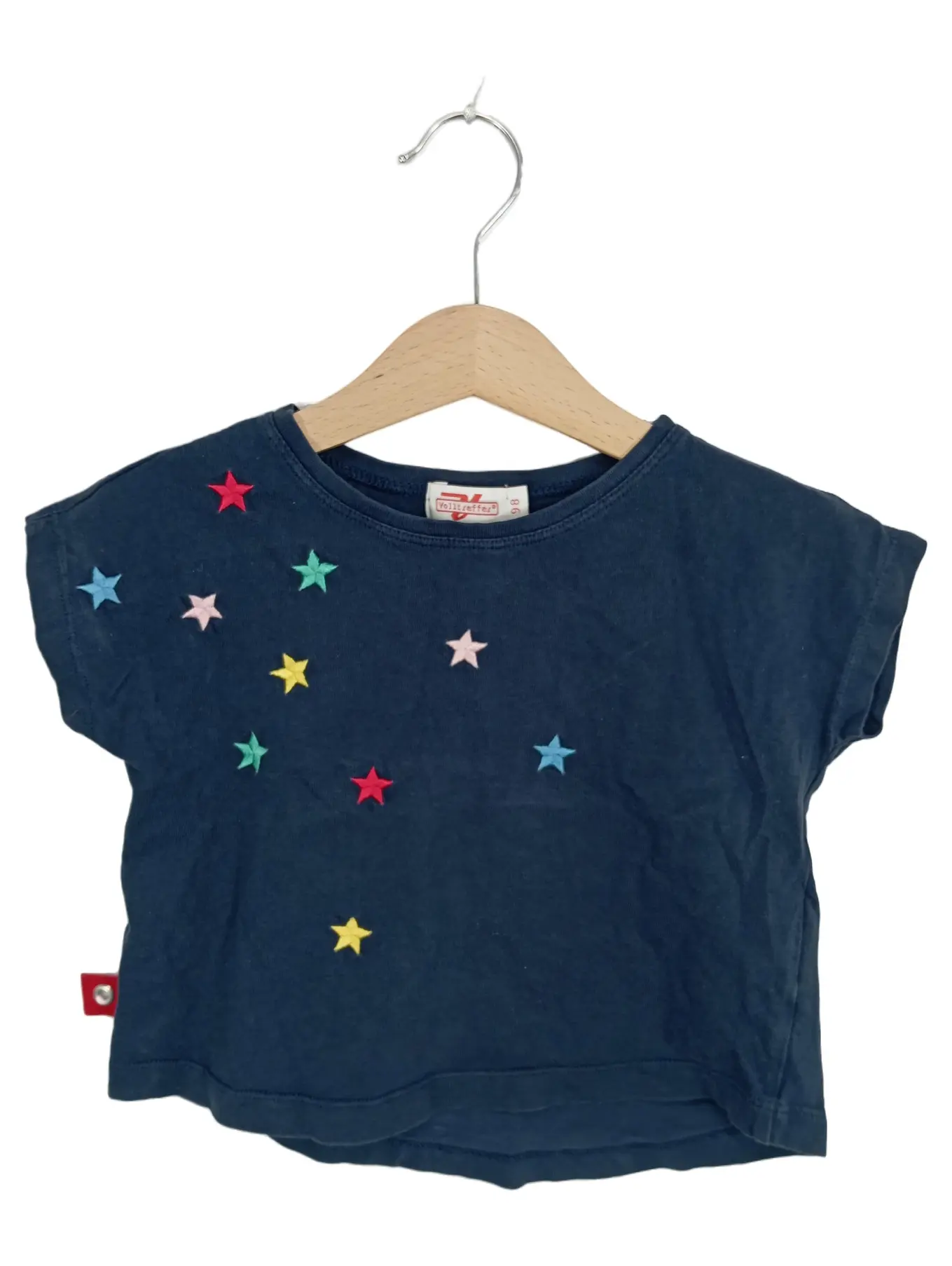 VOLLTREFFER Kinder T-Shirt Gr. 98 Blau Bunte Sterne Stickerei Baumwolle