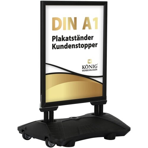 Kundenstopper Werbeaufsteller A1 Schwarz 59,4x84,1cm – Outdoor Wassertank Aufsteller & Plakatständer mit Rollen