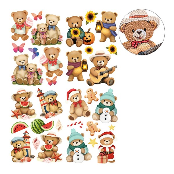 Diamond-Painting-Sticker, Teddys rund ums Jahr, DIN A4, 4 Bogen