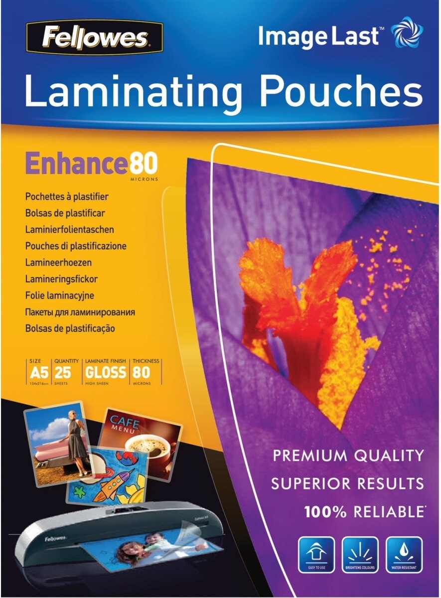 Fellowes ImageLast Enhance Laminierfolien DIN A5 Glänzend 80 Mikron (2 x 80) Transparent 100 Stück