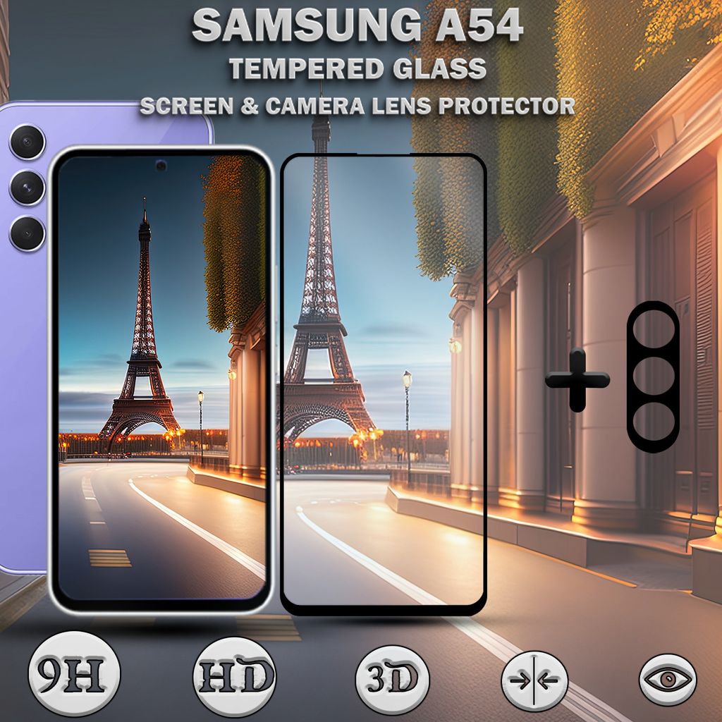 Samsung Galaxy A54 Displayschutzfolie und Objektivschutz aus 9H gehärtetem Glas