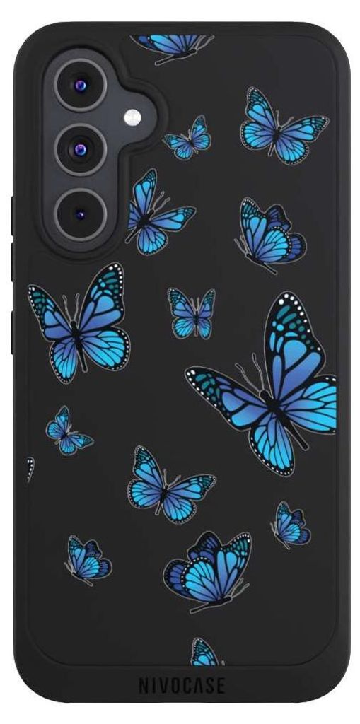 NIVOCASE Handyhülle für Samsung Galaxy A54 5G Hülle NIVOpure Case Schwarz Muster Schmetterling transparent