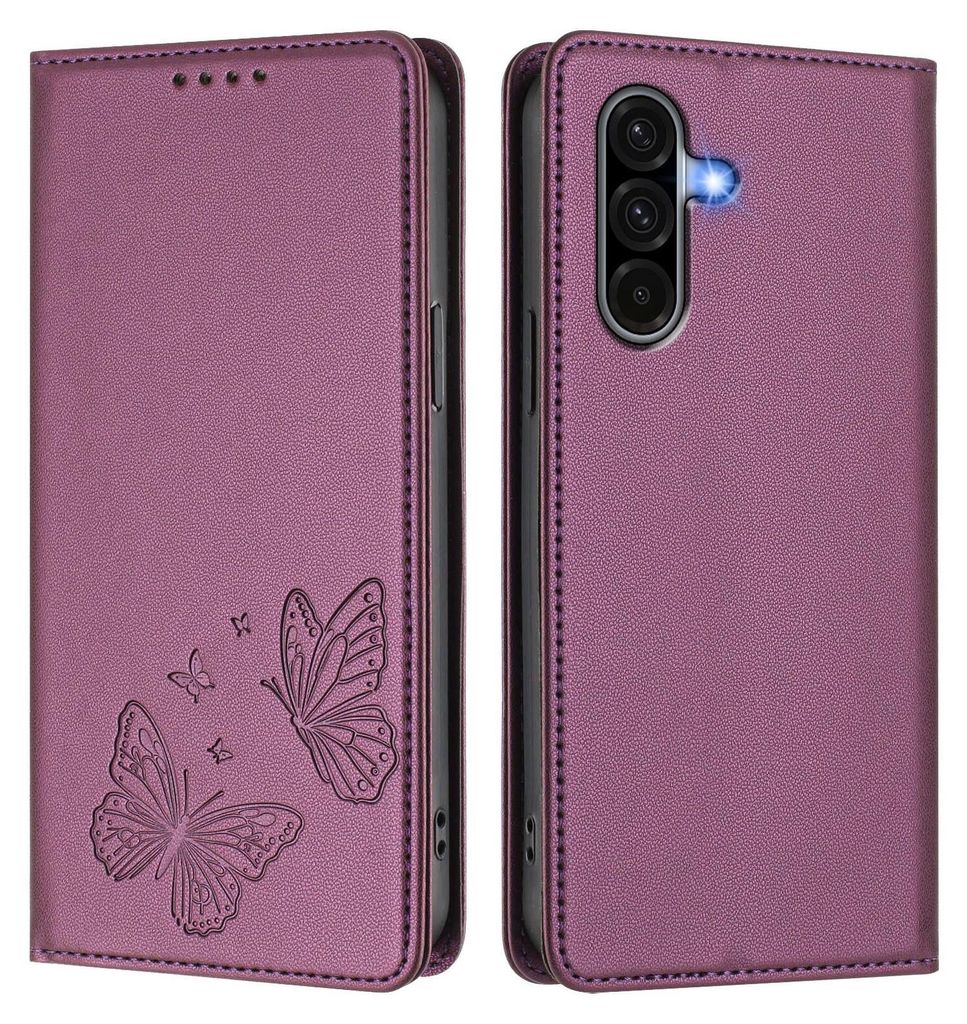 Lederhülle für Samsung Galaxy A56, Schmetterling Prägung Leder Brieftasche Schutzhülle mit Ständer Lila