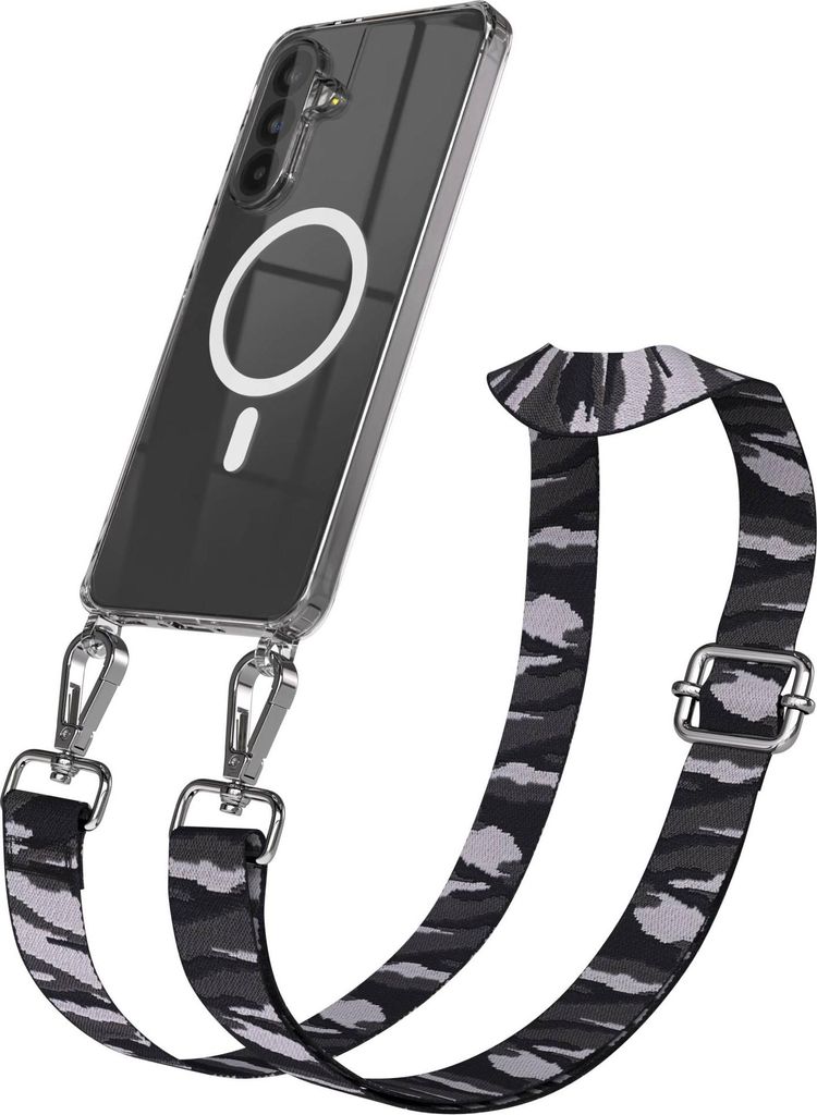 EAZY CASE - Handykette mit MagSafe Hülle für Samsung Galaxy A56, Handyband Camouflage Style, Karabiner Silber, Umhängeband in Grau