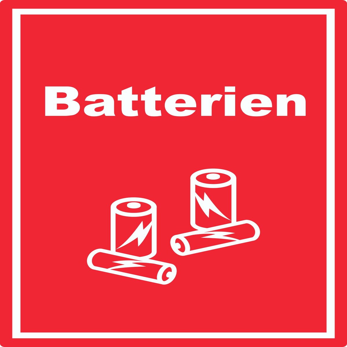 Batterien Mülltrennung Schild Text Symbol AA AAA hochkant A0 Rückseite selbstklebend