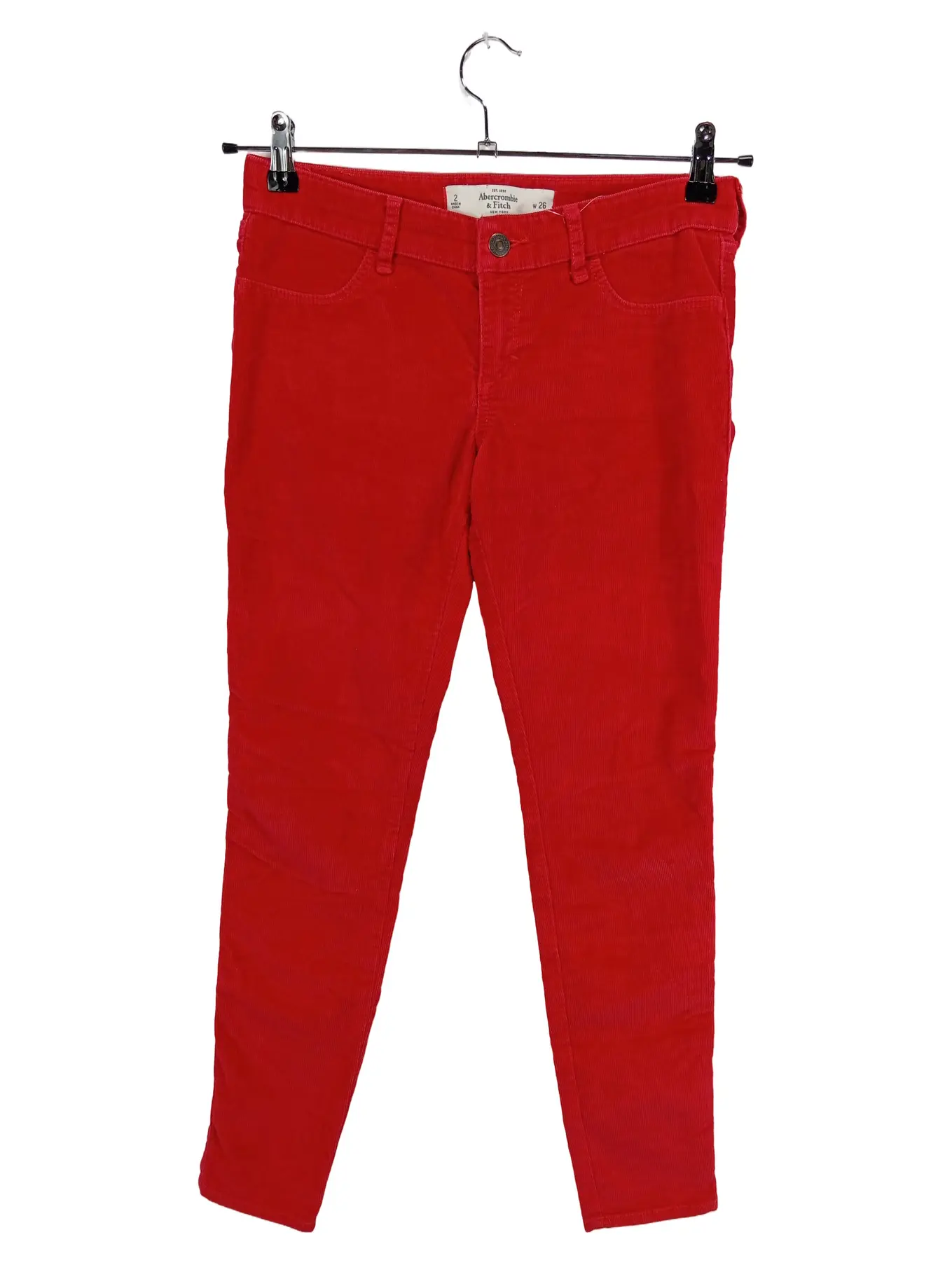 ABERCROMBIE & FITCH Cordhose Damen Rot W26 Casual Baumwolle Skinny