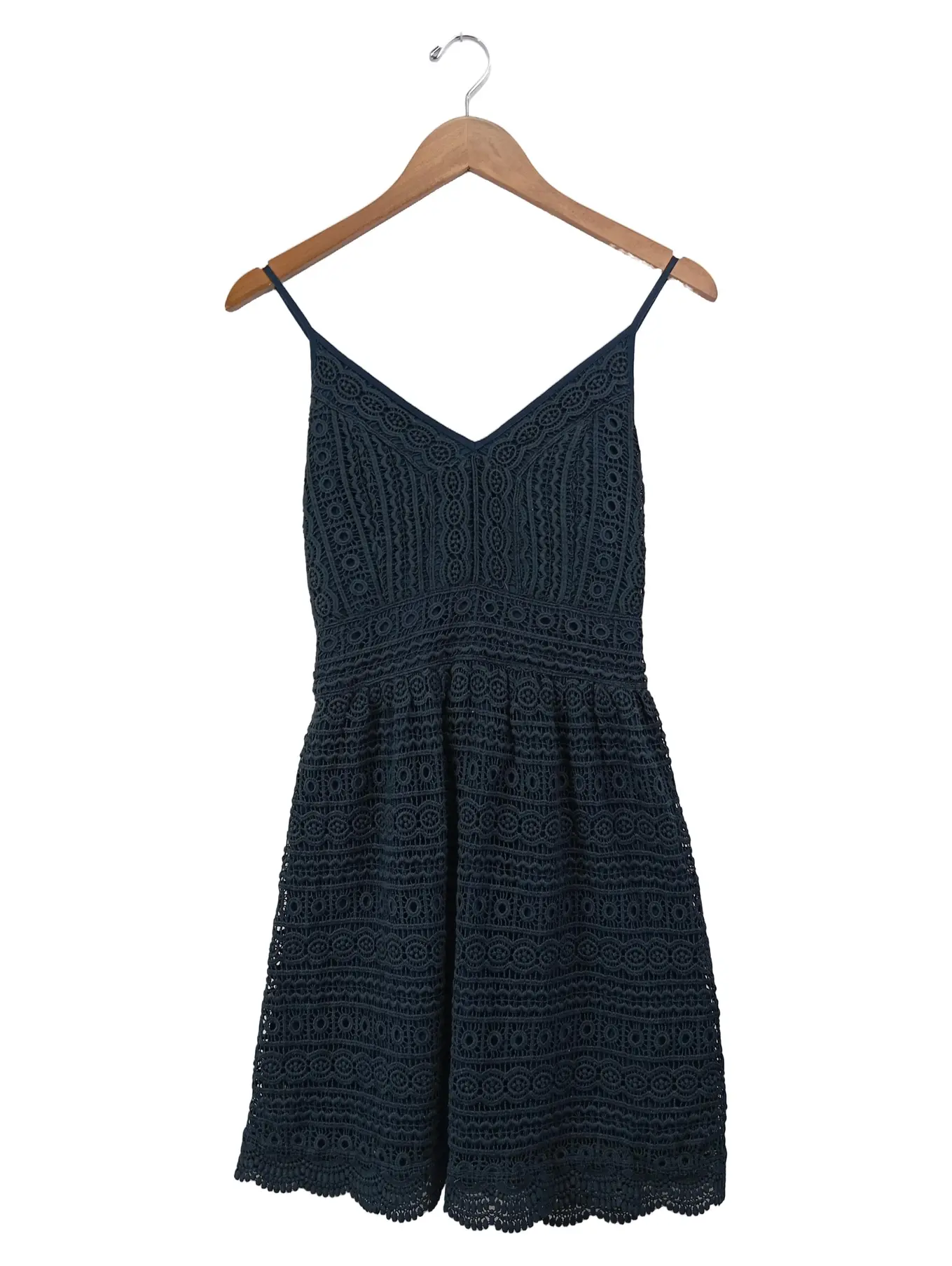 ABERCROMBIE & FITCH Damen Cocktailkleid Gr. 36/S Blau Elegant Lochmuster