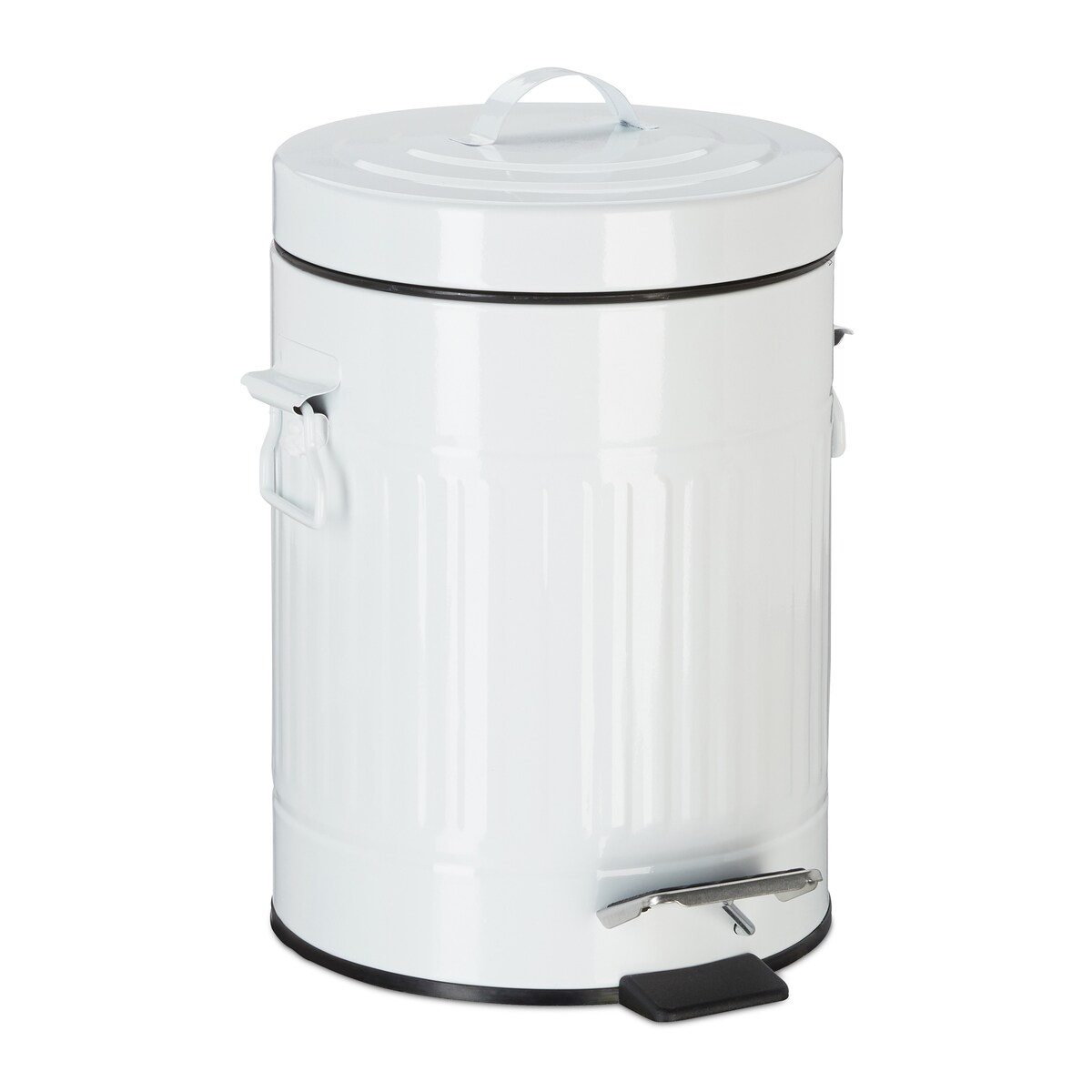 Relaxdays Treteimer Vintage, Abfalleimer für Küche oder Bad, aus Metall, mit Tretfunktion, Kosmetikeimer, 12 Liter Weiß