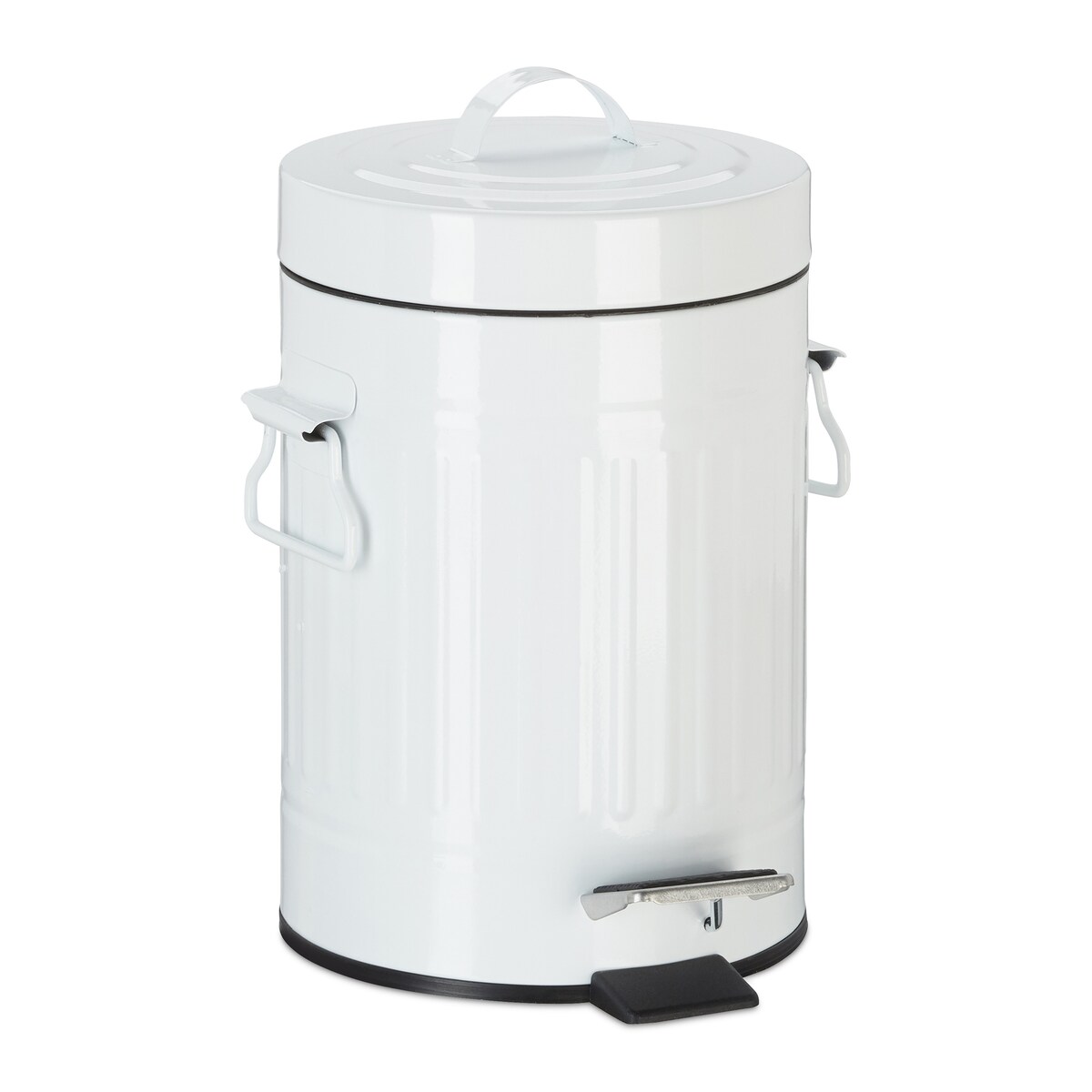 Relaxdays Treteimer Vintage, Abfalleimer für Küche oder Bad, aus Metall, mit Tretfunktion, Kosmetikeimer, 5 Liter, Weiß