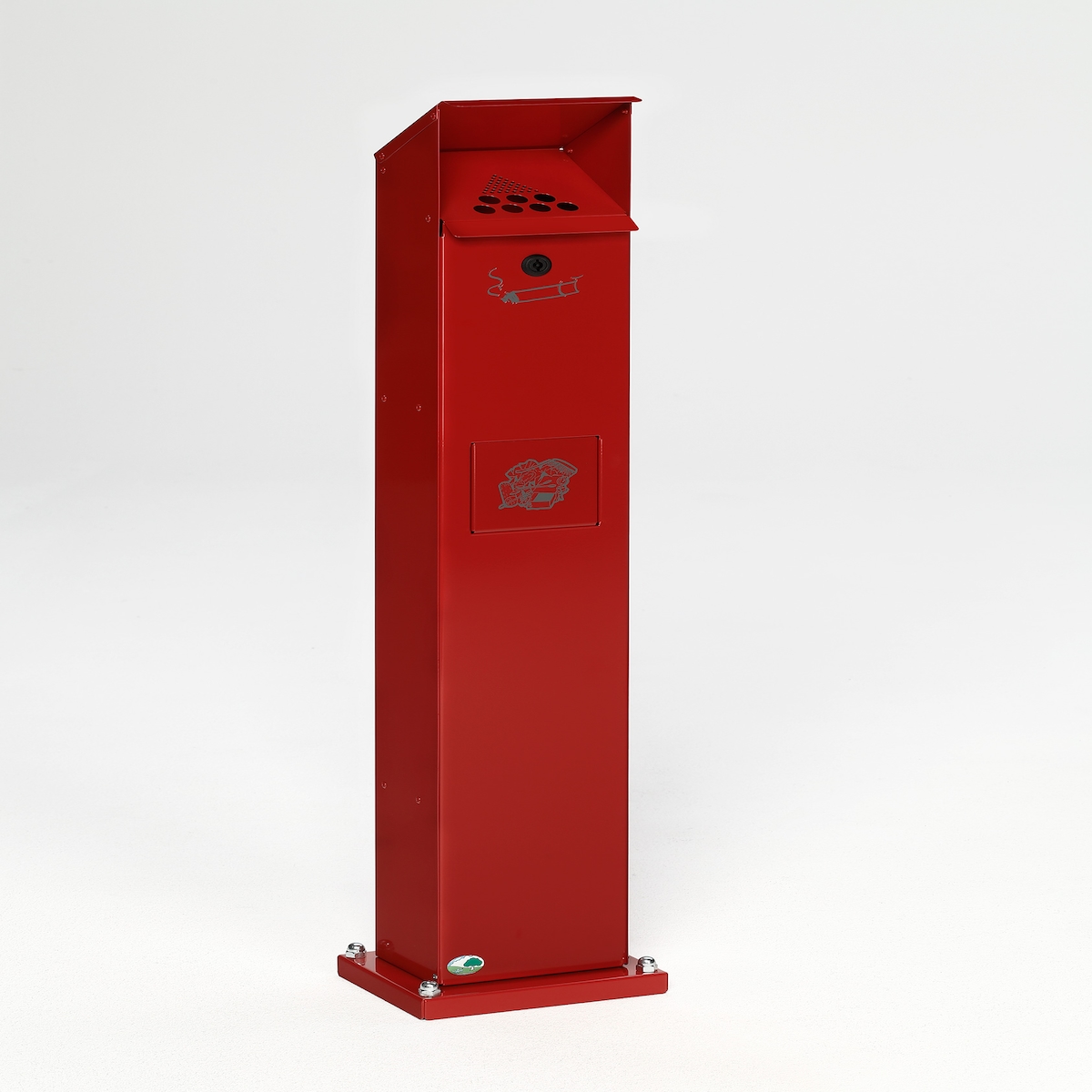 PROREGAL Kombiascher Standsäule für Außenbereich | HxBxT 115x18x15cm | Verzinkter Stahl | Rot | Mülleimer Aschenbecher Abfalleimer