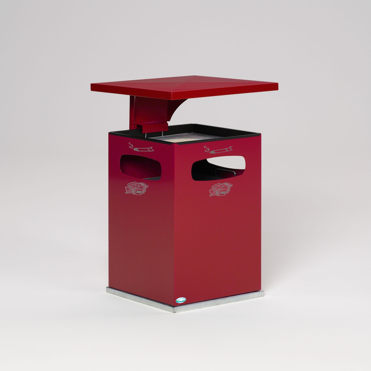 PROREGAL Klassischer Kombiascher eckig | HxBxT 75,5x43x43cm | Verzinkter Stahl | Rot | Mülleimer Aschenbecher Abfalleimer