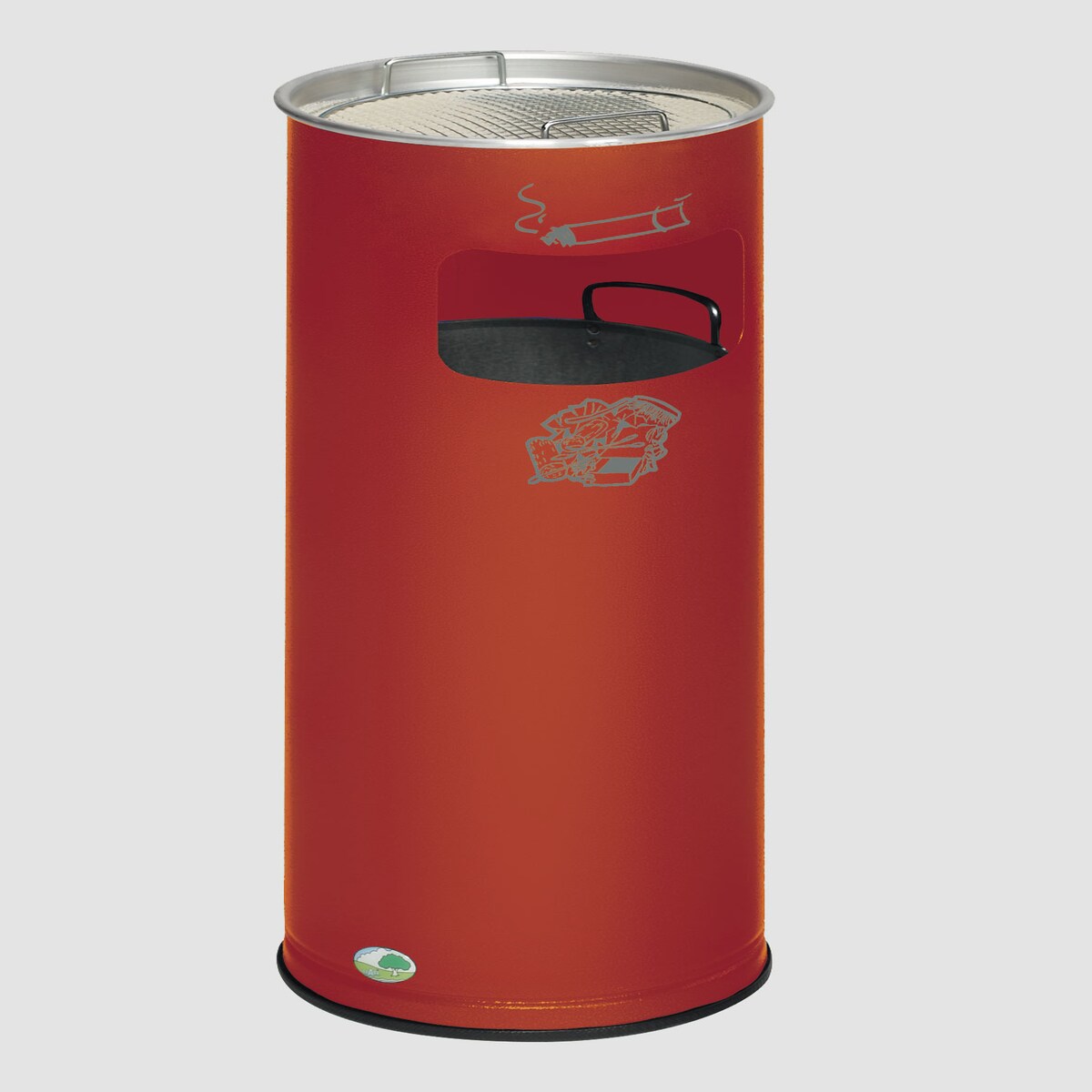 PROREGAL Klassischer runder Kombiascher | HxBxT 71x35,5x35,5cm | Verzinkter Stahl | Rot | Mülleimer Aschenbecher Abfalleimer