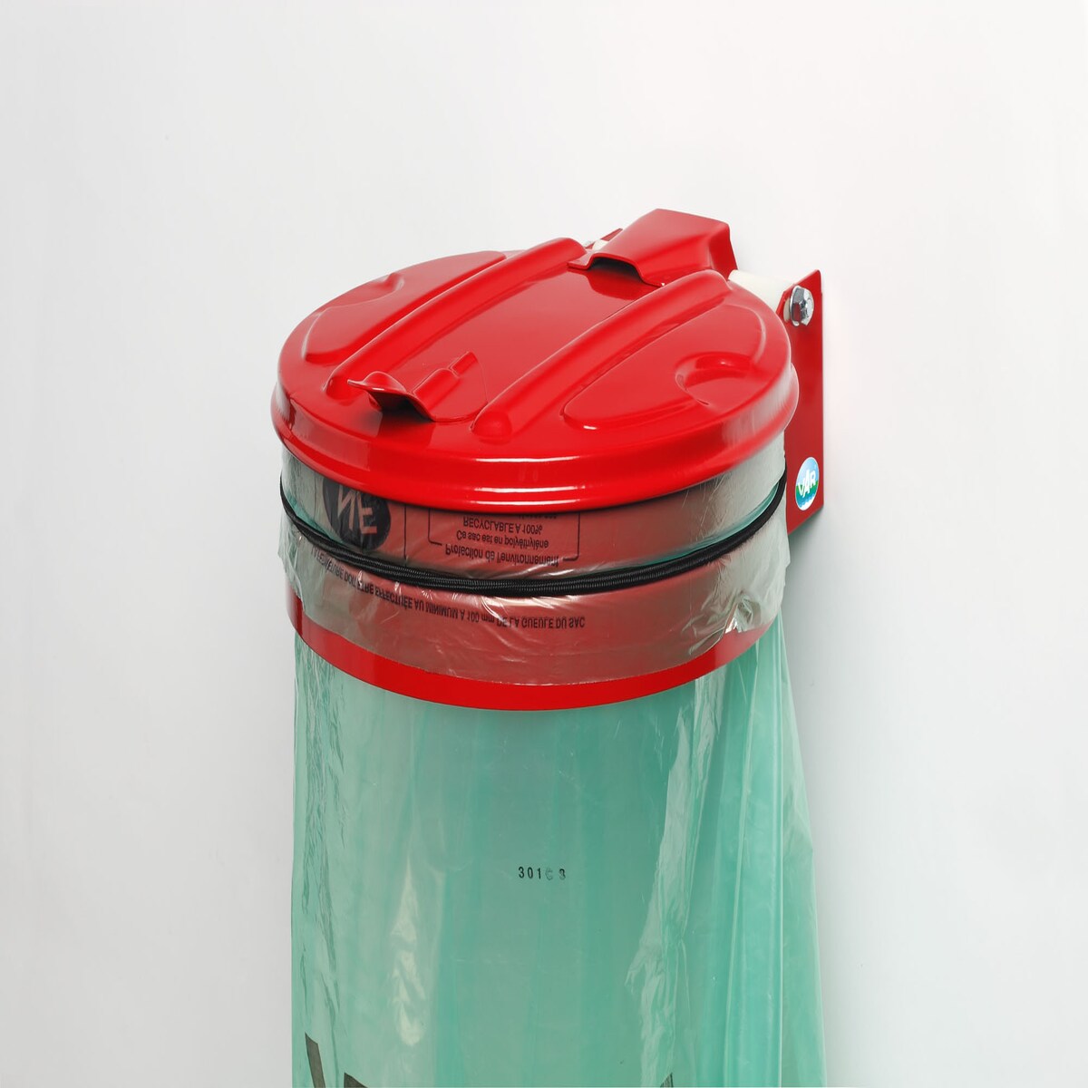 PROREGAL Wandhalterung mit Gummiband | mit Metall-Deckel | BxT 37x46,5cm | Stahl | Rot | Mülleimer Abfalleimer Müllkorb
