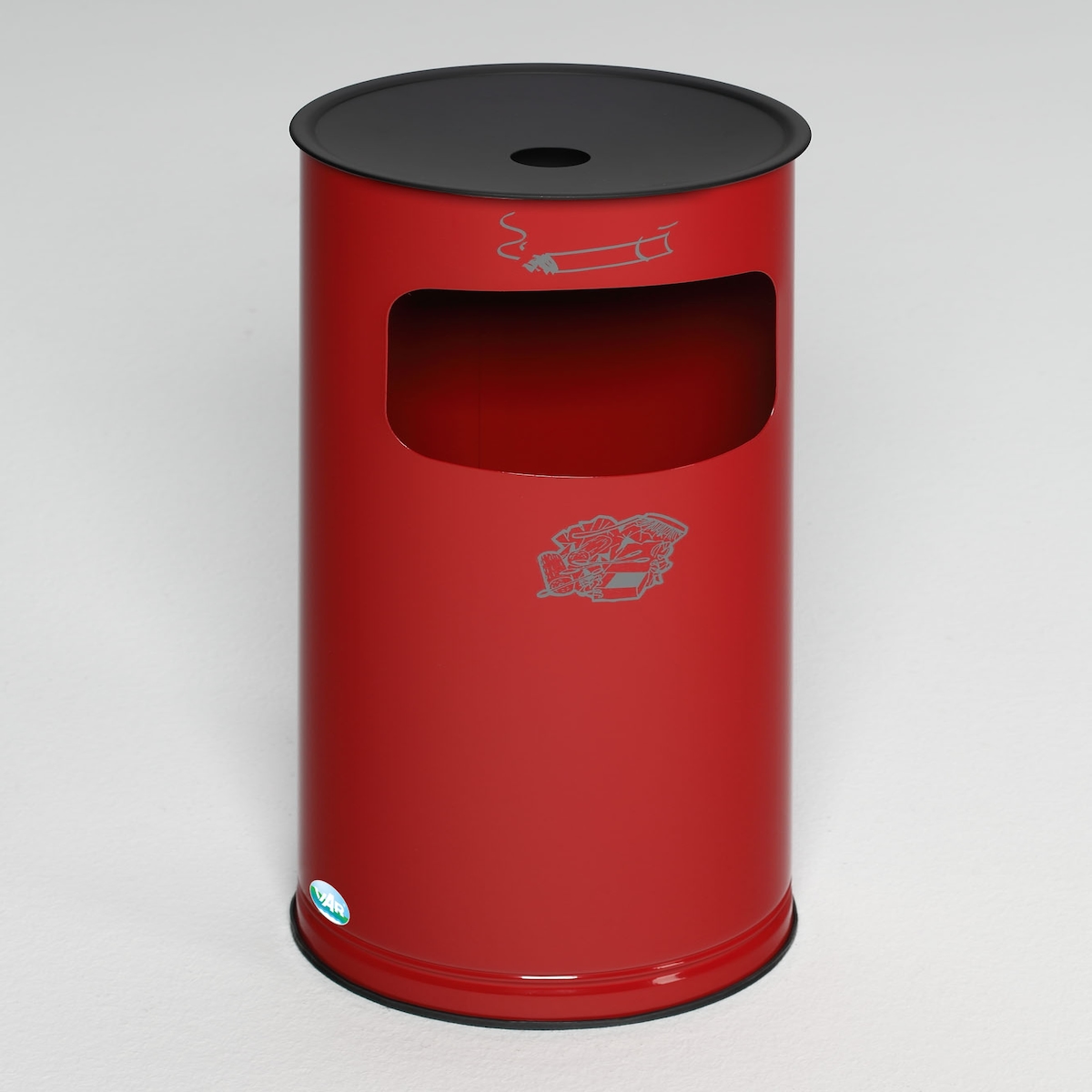 PROREGAL Klassischer runder Kombiascher | HxBxT 61x25x25cm | Verzinkter Stahl | Rot | Mülleimer Aschenbecher Abfalleimer