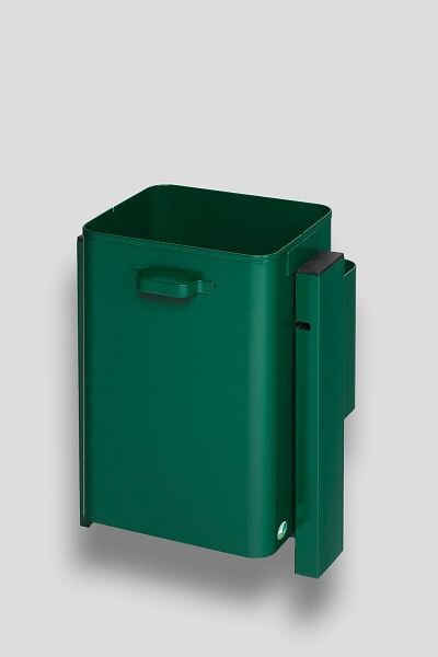PROREGAL Klassischer eckiger Abfallsammler für Außenbereich | Wand- oder Rohrbefestigung | HxBxT 55x41x33cm | Grün | Mülleimer Abfalleimer Müllkorb