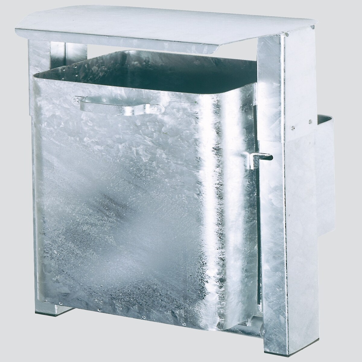 PROREGAL Klassischer eckiger Abfallsammler | mit Dach | Wand- oder Rohrbefestigung | HxBxT 69x42x35cm | Feuerverzinkt | Mülleimer Abfalleimer