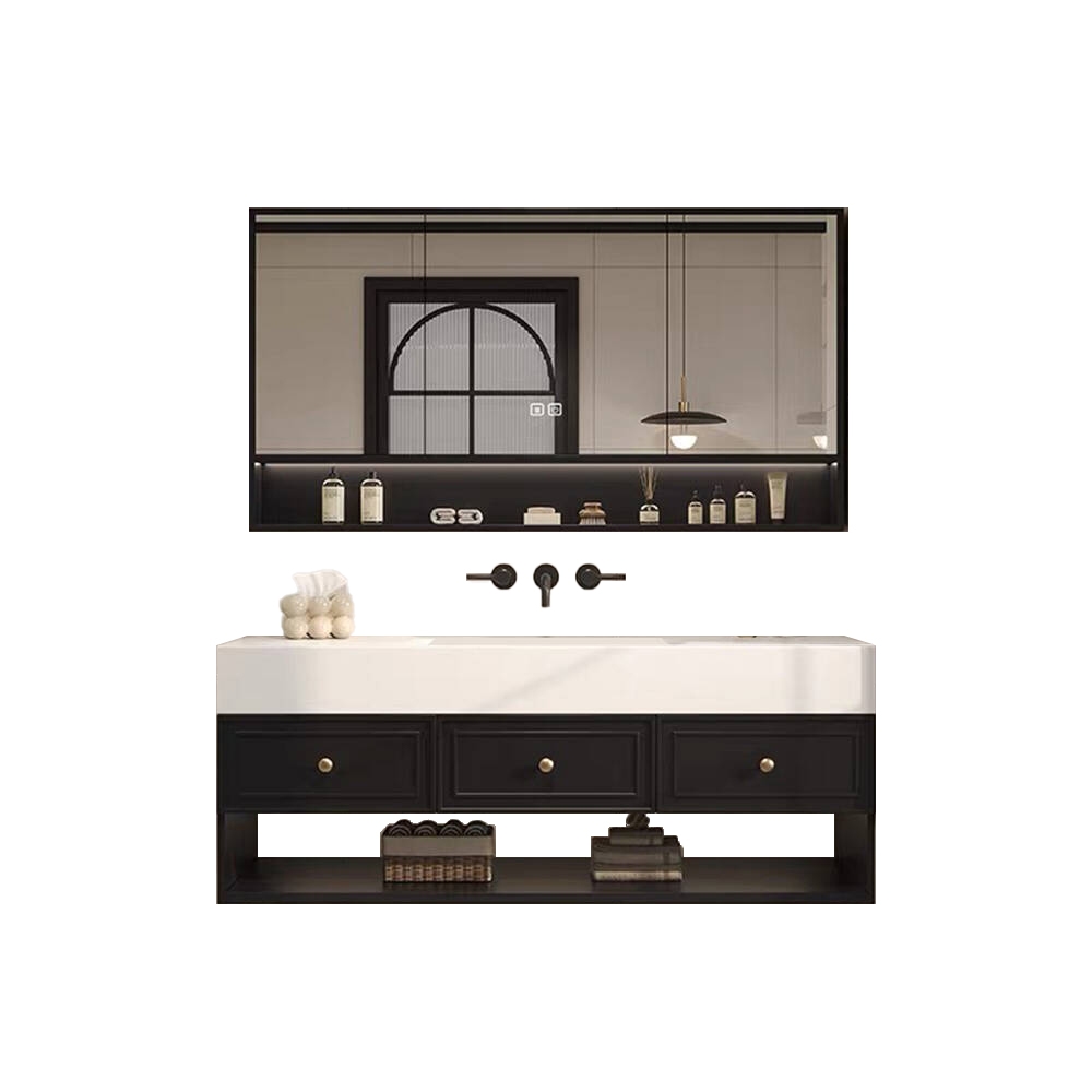 Sinterstein Waschbecken mit Schublade und Ablage – Moderne Waschtischkombination mit LED-Spiegel für das Badezimmer 140*55cm【YT2032-140 K】