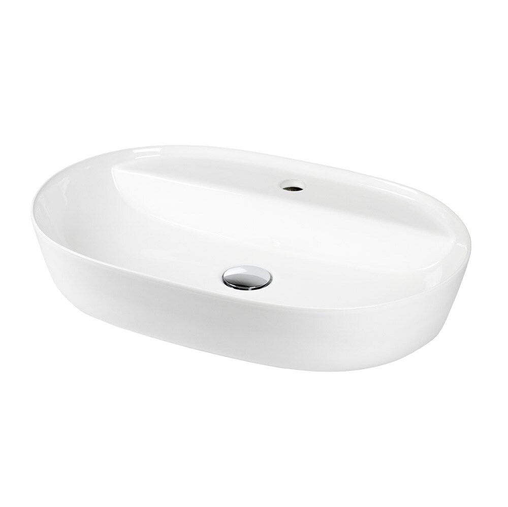 Keramik Aufsatz Waschbecken Oval 610 x 415 x 140 mm Anschlussset weiß mit Ablage