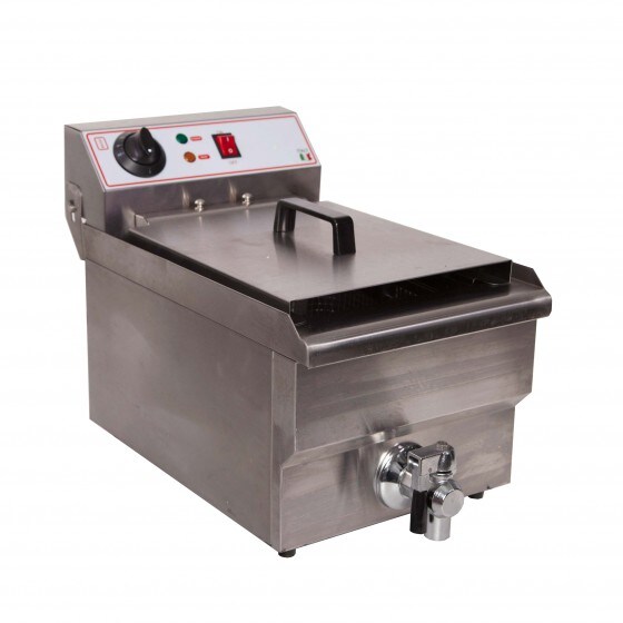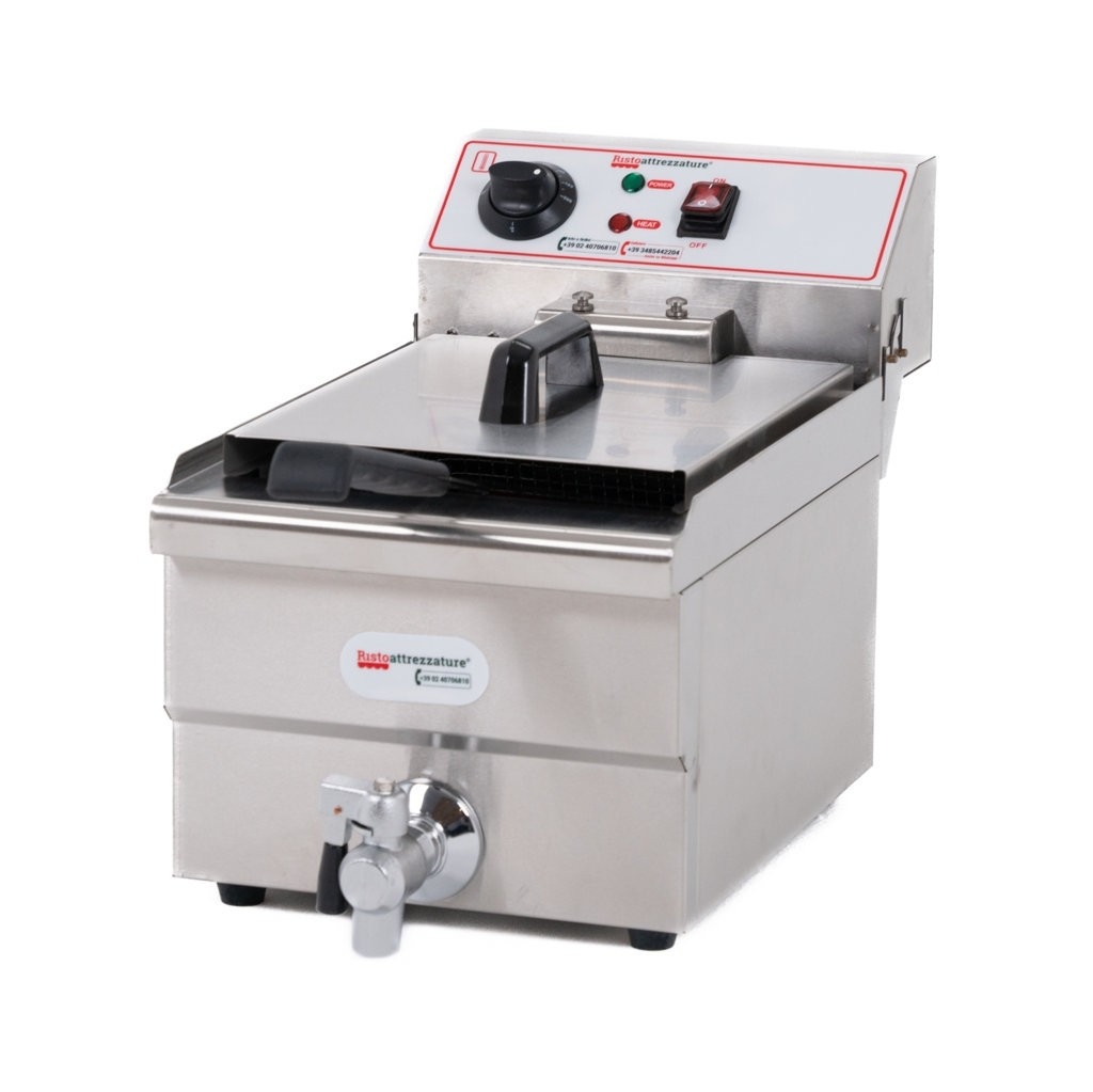 Ristoattrezzature Professionelle elektrische Fritteuse mit einer Wanne aus Edelstahl – mit Ablasshahn – 10 Liter Fassungsvermögen, 6 Liter Öl