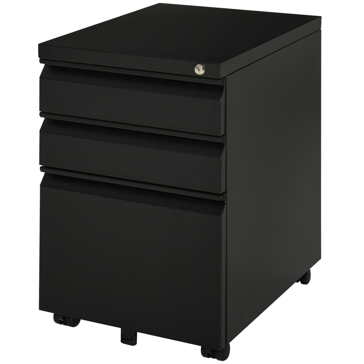 Vinsetto Rollcontainer, mobiler Aktenschrank mit 3 Schubladen, abschließbarer Büroschrank mit Hängeregistratur, Aufbewahrung, Stahl, 39 x 48 x 5...