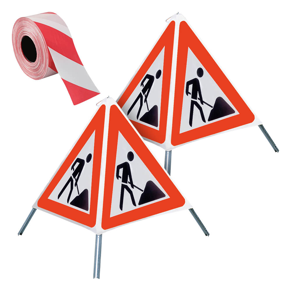 BIGPACK 2 x NISSEN Faltsignal Warnsymbol Baustelle, weiß tagesl. + Absperrband