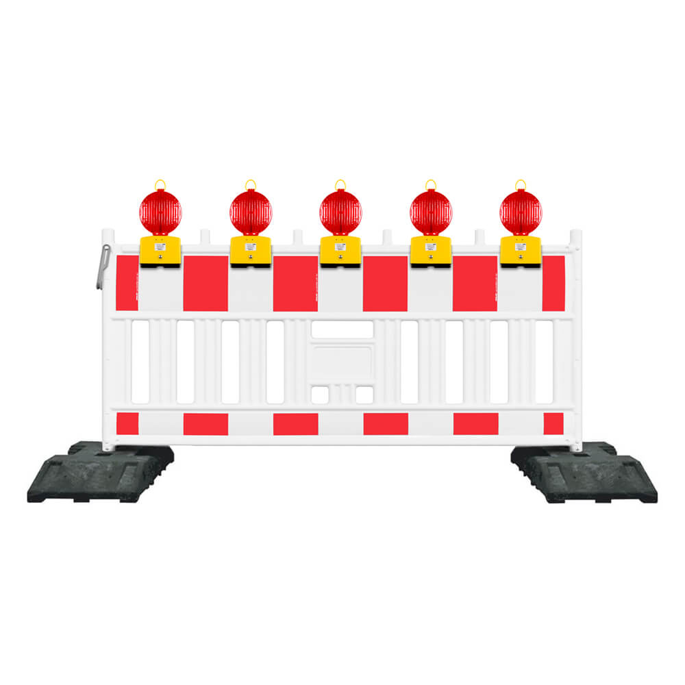 Absperr-Set, RA1-Schrankenzaun COBA, K1-Fußplatten und 5 Blitzleuchten in Rot, Absperrschranke, Absperrzaun, Absperrschrankengitter, Baustellenzaun