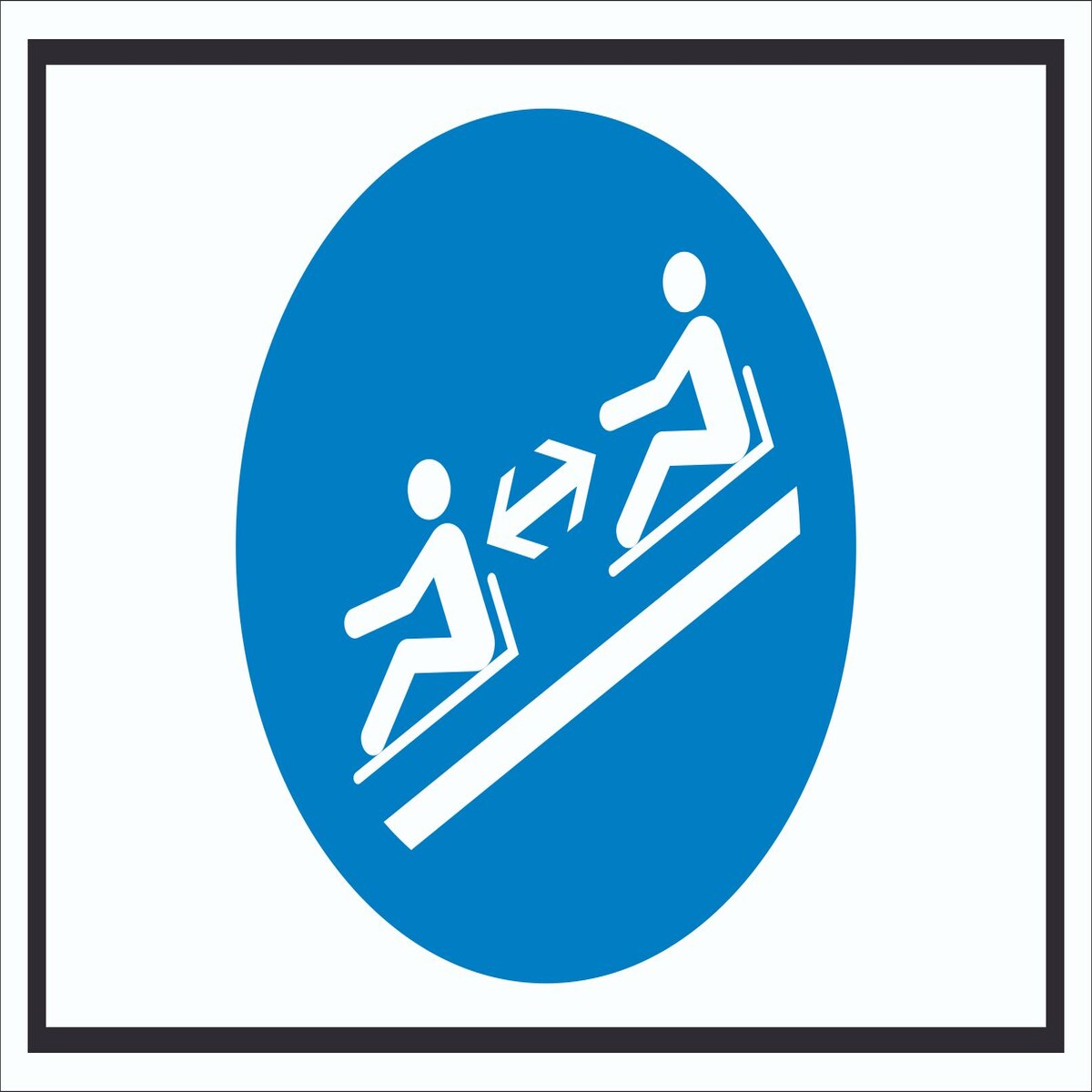 HB-Druck Abstand halten zwischen den Rodeln Symbol Schild A0 Rückseite selbstklebend