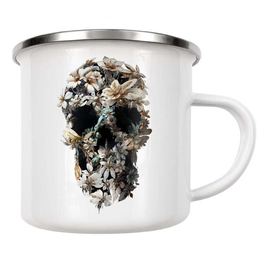 Emaille Tasse "Steampunk-Schädel" artboxONE - Natur,Floral,Abstrakt,Halloween - Schädel,Kunst,Illustration,Gothic,Ai,Boho,Blume,Steampunk,Original