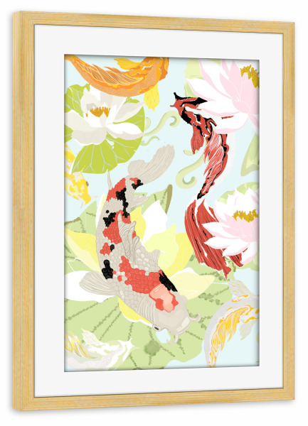 Poster mit Rahmen kiefer "Hutsurier" artboxONE - Natur,Tiere,Abstrakt - Chinois,Teich,Japan,Koifisch,Abstrakt,Kunst,Orientalisch