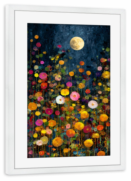 Poster mit Rahmen weiß "Blumen Nacht B, Klimt (matart)" artboxONE - Natur - Blumen,Garten,Wiese,Natur,Abstraktion,Kunst,Gustav klimt,Klimt,Nacht,Mond