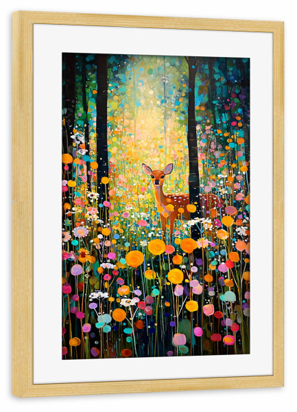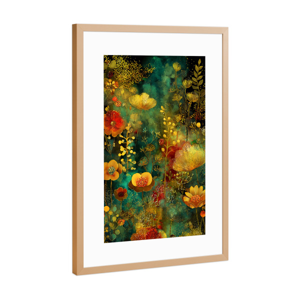 Poster mit Rahmen kiefer "Waldblumen J, Klimt (matart)" artboxONE - Natur,Floral,Abstrakt - Wald,Blumen,Tiere,Natur,Modern,Kunst,Gustav klimt,Klimt