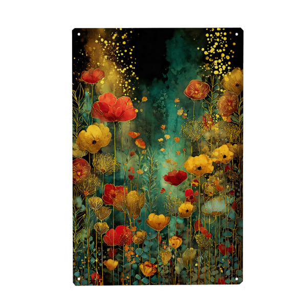 Metall Poster "Blumen Nacht B, Klimt (matart)" artboxONE - Natur - Blumen,Garten,Wiese,Natur,Abstraktion,Kunst,Gustav klimt,Klimt,Nacht,Mond
