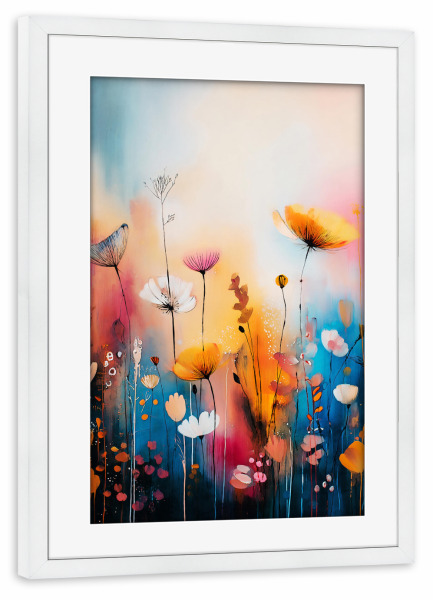 Poster mit Rahmen weiß "Blumen Aquarell AB (matart)" artboxONE - Natur - Blumen,Garten,Wiese,Natur,Modern,Abstrakt,Kunst,Aquarell