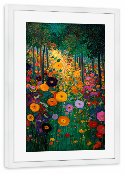 Poster mit Rahmen weiß "Waldblumen B, Klimt (matart)" artboxONE - Natur,Floral - Blumen,Forest,Natur,Abstraktion,Kunst,Gustav klimt,Klimt
