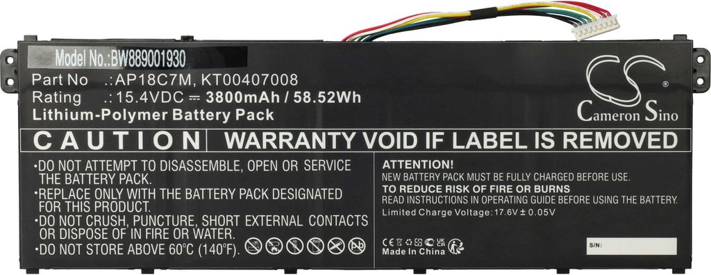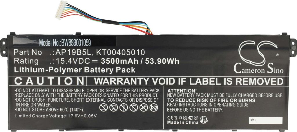 CR2032 CMOS Batterie Knopfzellen mit Stecker kabel kompatibel für Acer Aspire Vero AV15-51
