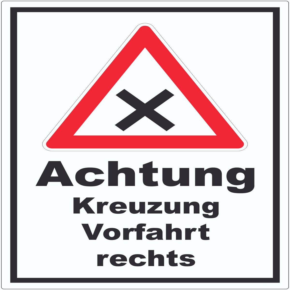 HB-Druck Aufkleber Achtung Kreuzung Vorfahrt rechts A1 (594x841mm)