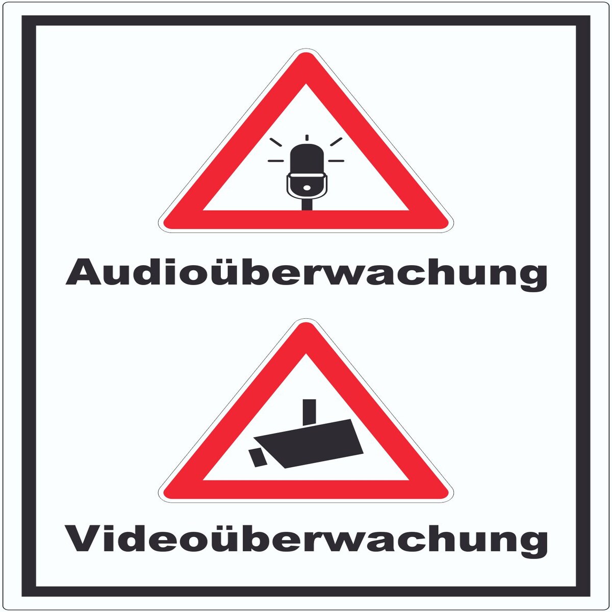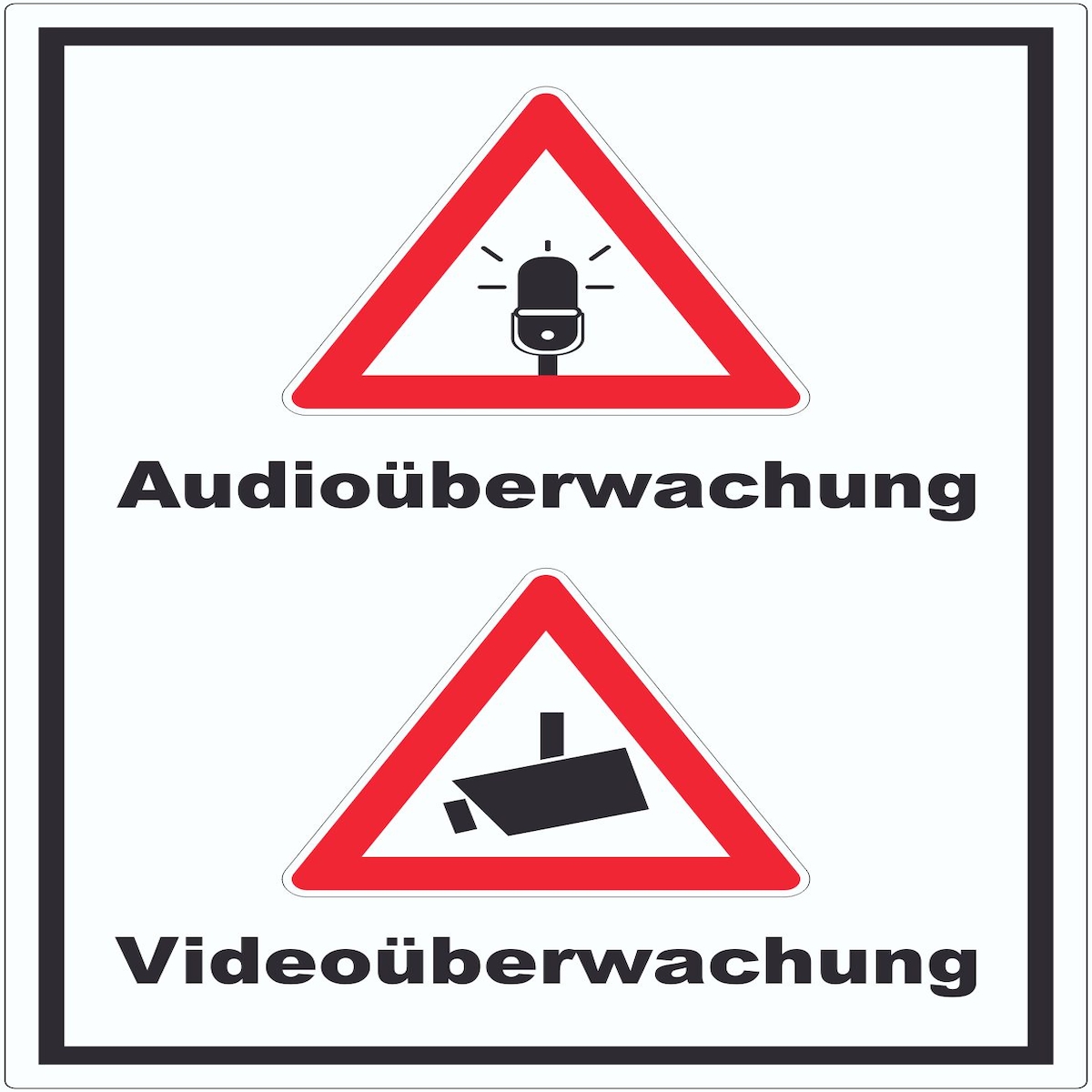 Achtung Audio- und Videoüberwachung Schild A5 Rückseite selbstklebend