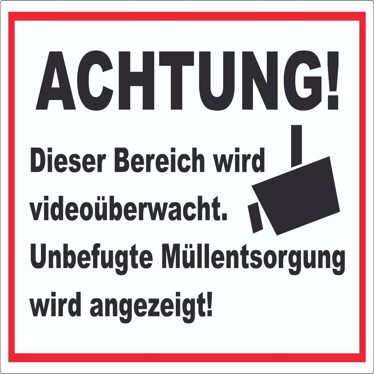 Achtung Videoüberwachung Unbefugte Müllentsorgung wird angezeigt Schild