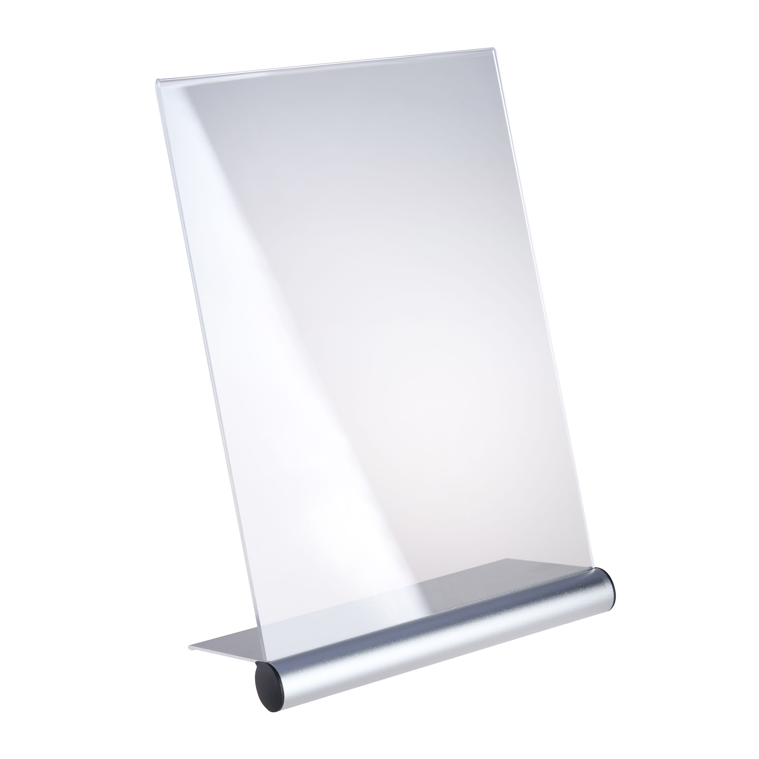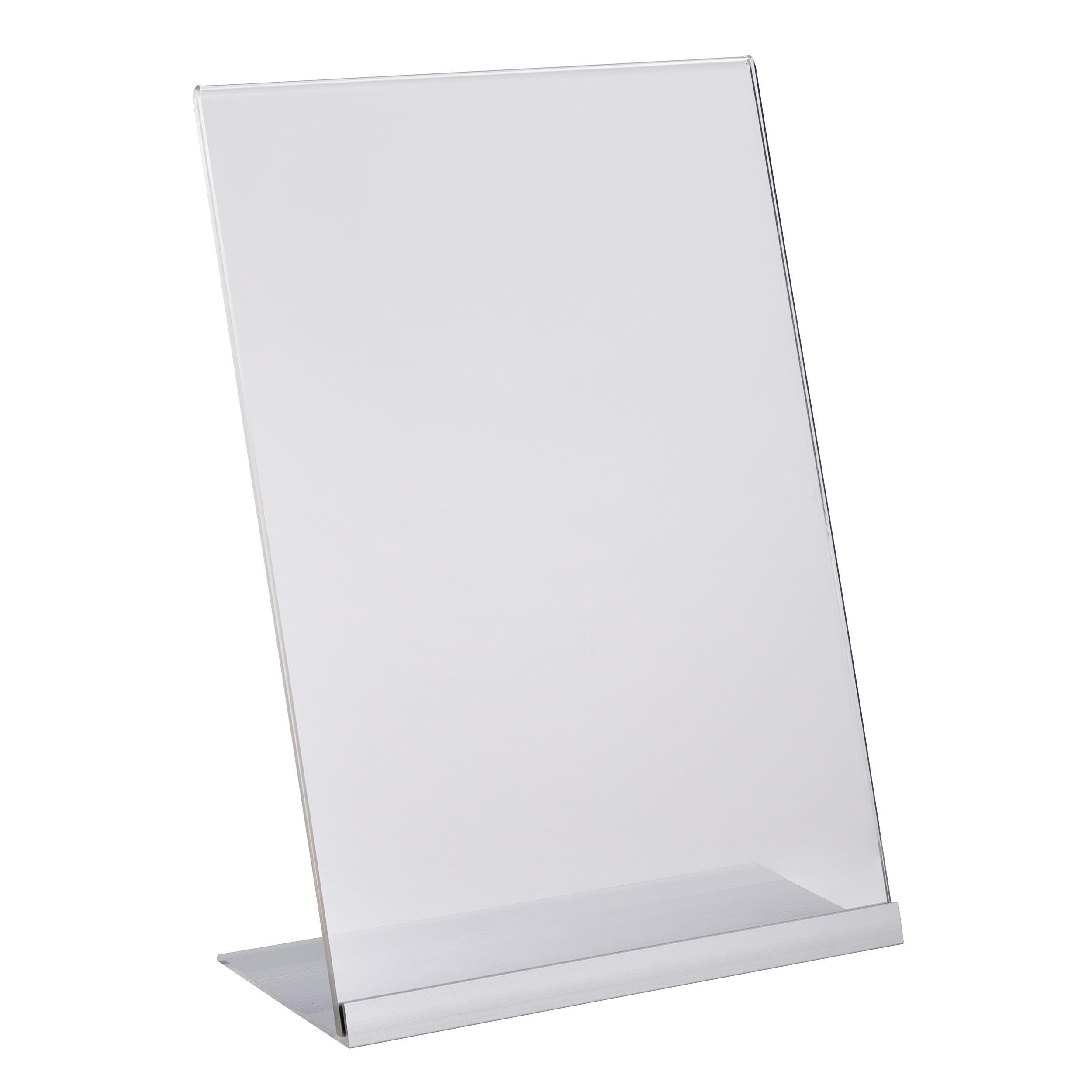 L-Aufsteller Acryl mit Aluminiumfuß A4 | transparent|silber, Acryl (PMMA)|Aluminium