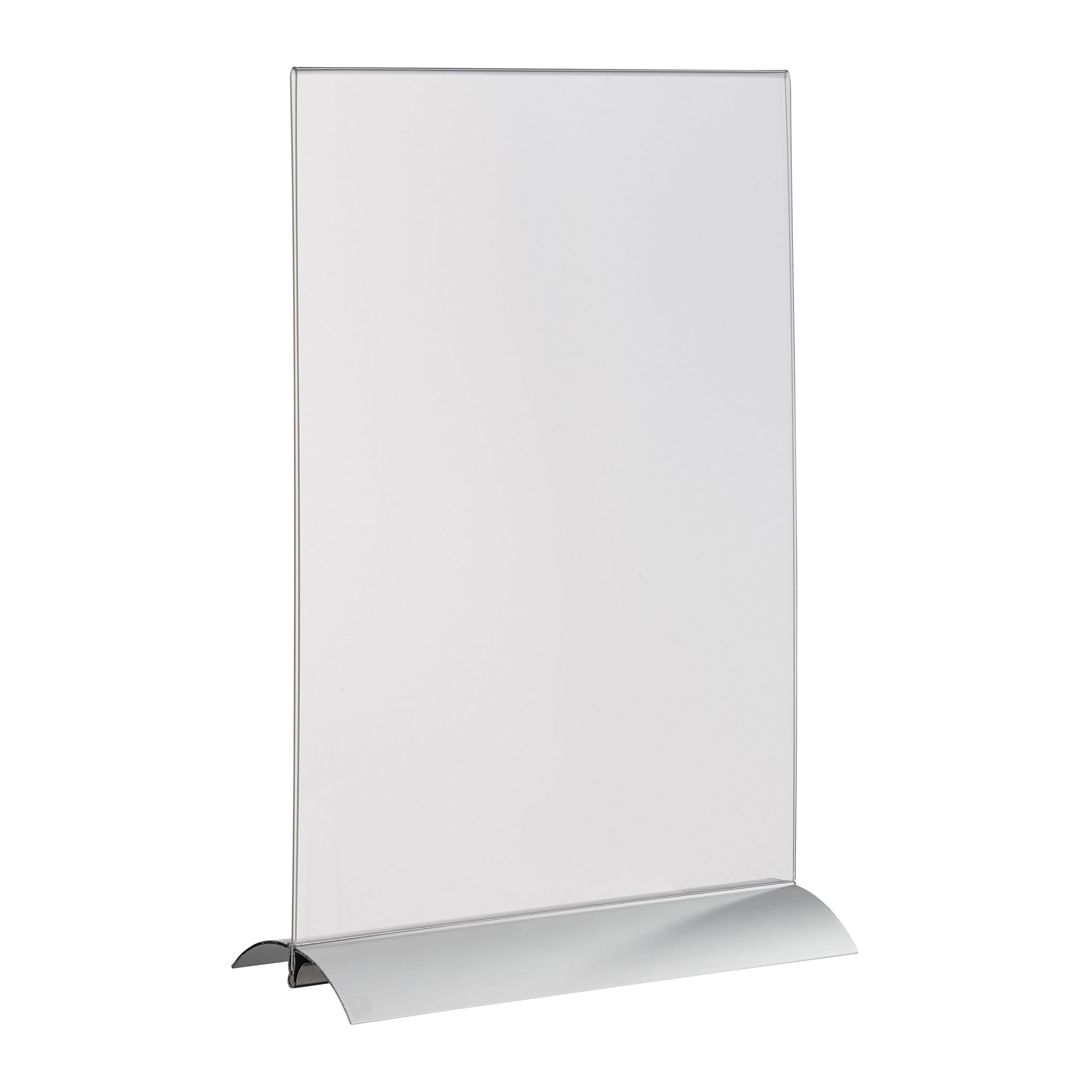 T-Aufsteller mit Aluminumklemmfuß A4 | Hochformat, Acryl (PMMA)|Aluminium, silber|transparent