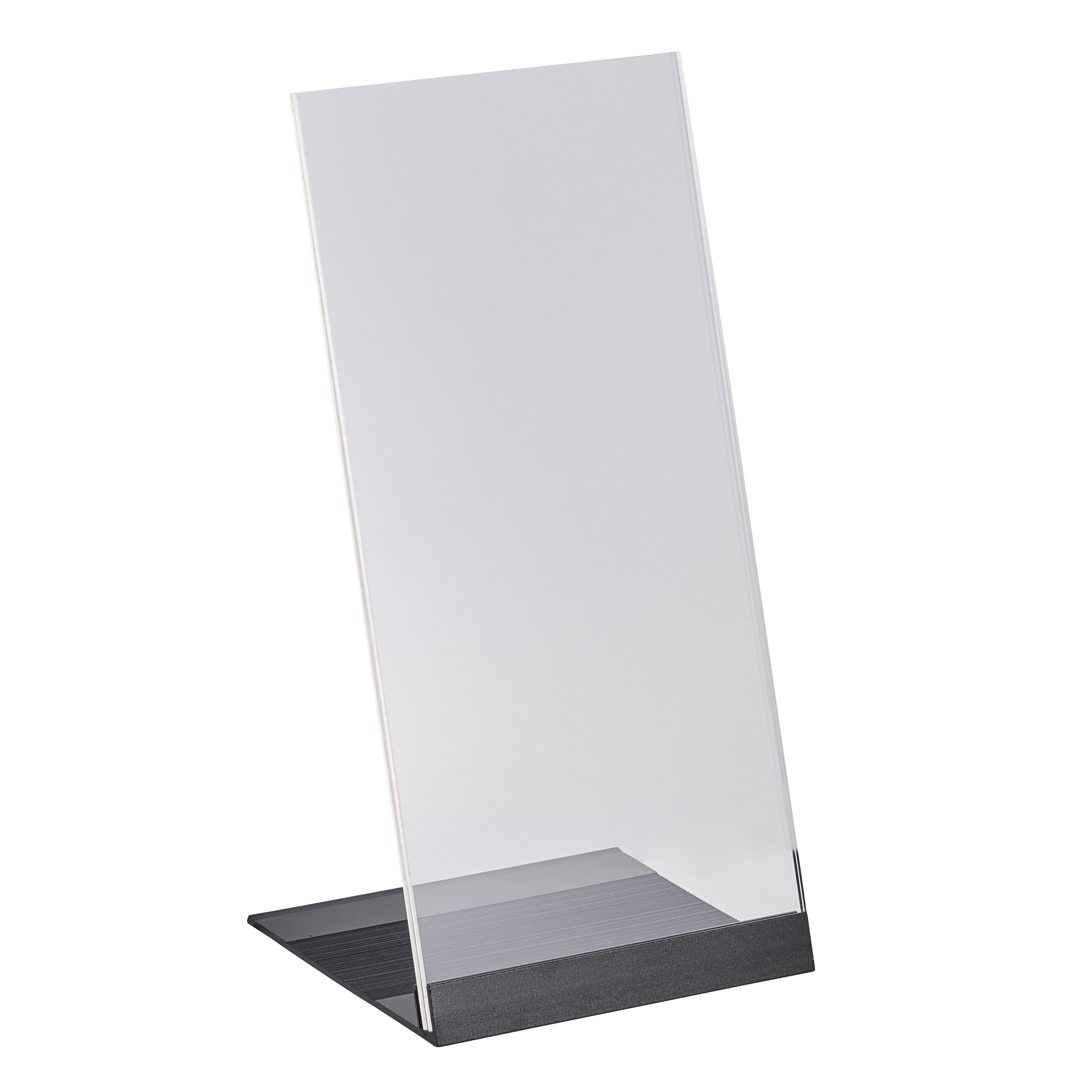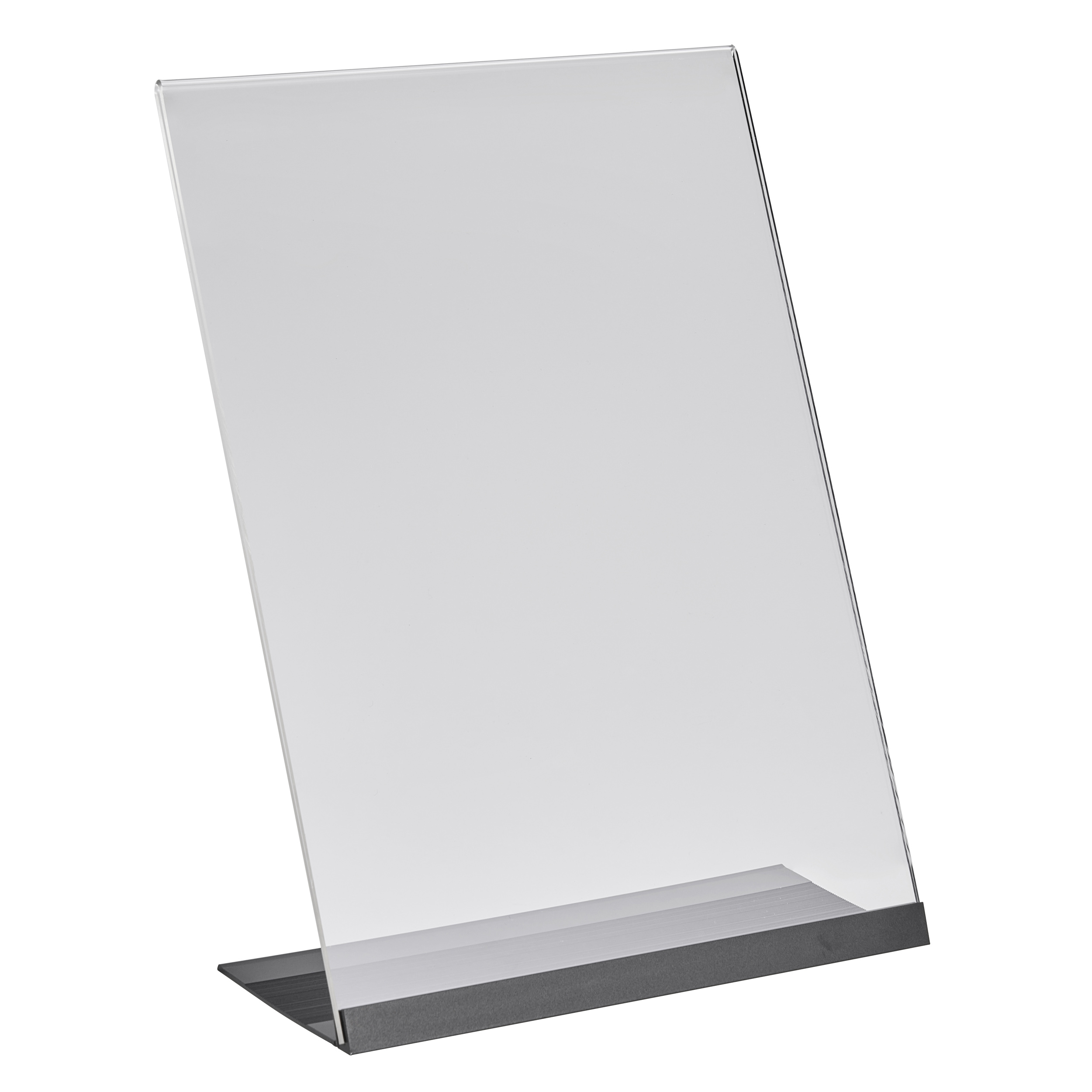 L-Aufsteller Acryl mit Aluminiumfuß A4 | transparent|schwarz, Acryl (PMMA)|Aluminium