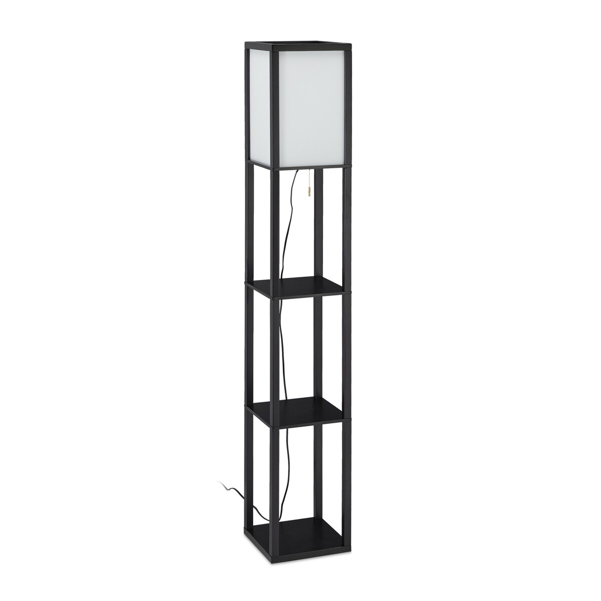 Relaxdays Stehlampe mit Regal, HBT: 161 x 26 x 26 cm, E27-Fassung, Holz & Acryl, modernes Design, Stehleuchte, schwarz